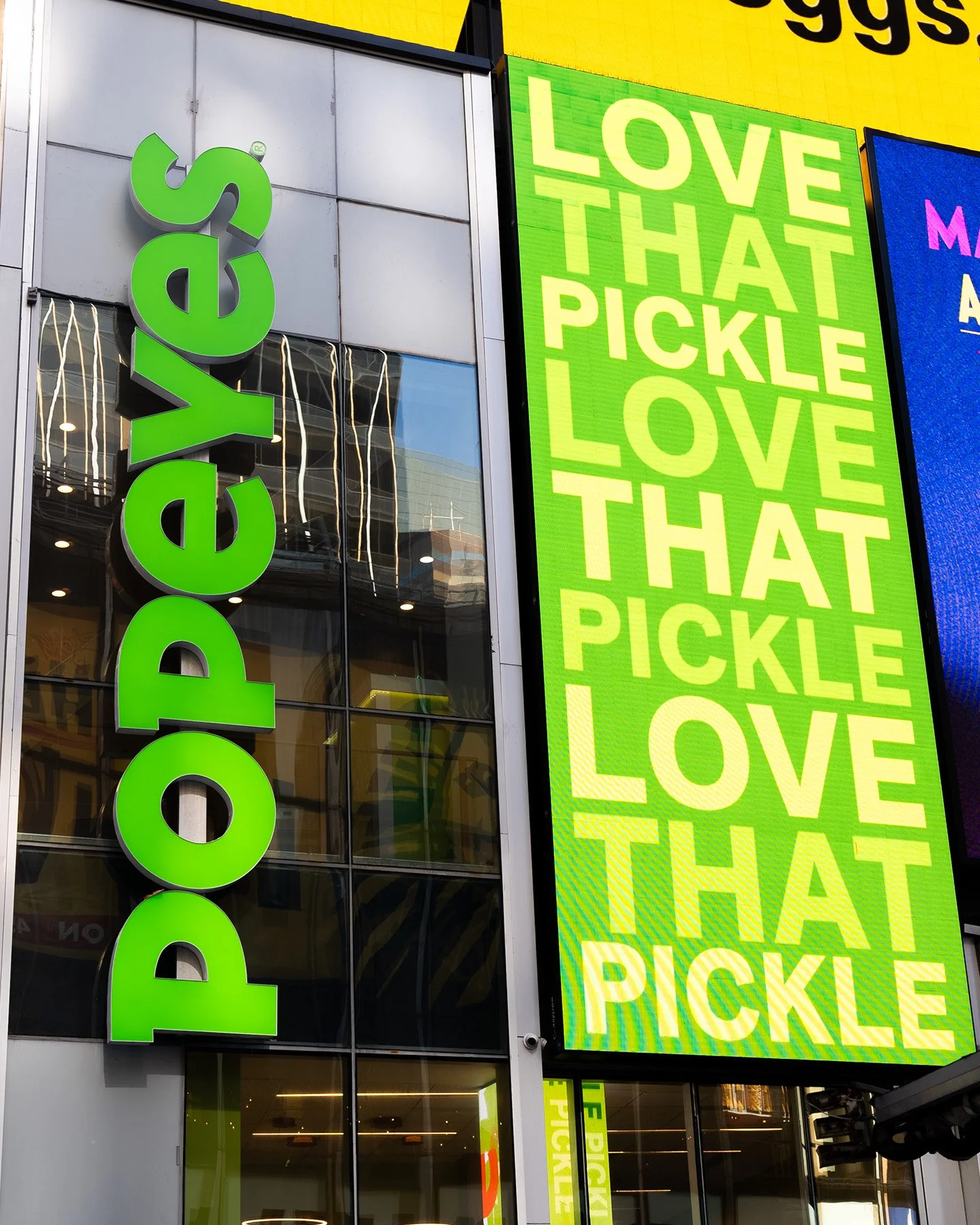In April 2025, Popeyes released a Pickle Menu LTO, feauturing Pickle Glazed Wings, a Pickle Glaze Chicken Sandwich, Fried Pickles and Pickle Lemonade. We teased our Pickle Collab, turned our entire Instagram feed green, and turned our Times Square Location green, where we hit the streets to try and find our true Pickle People.