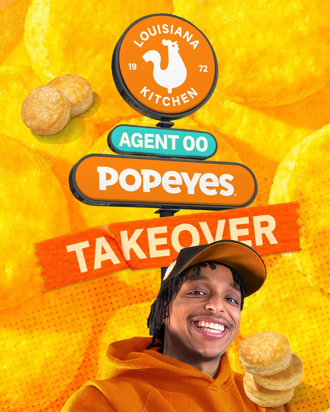 On May 14, 2025, we celebrated National Buttermilk Biscuit Day the only way Popeyes could. We teamed up with Agent 00, one of Twitch’s biggest names (and the world’s biggest Popeyes fan), for a full-day takeover of our New Orleans restaurant. From interviewing for a job, to building his own Chicken Sandwich, to serving fans at the counter, to capping it all off with a biscuit-eating showdown, Agent 00 lived the full Popeyes experience.